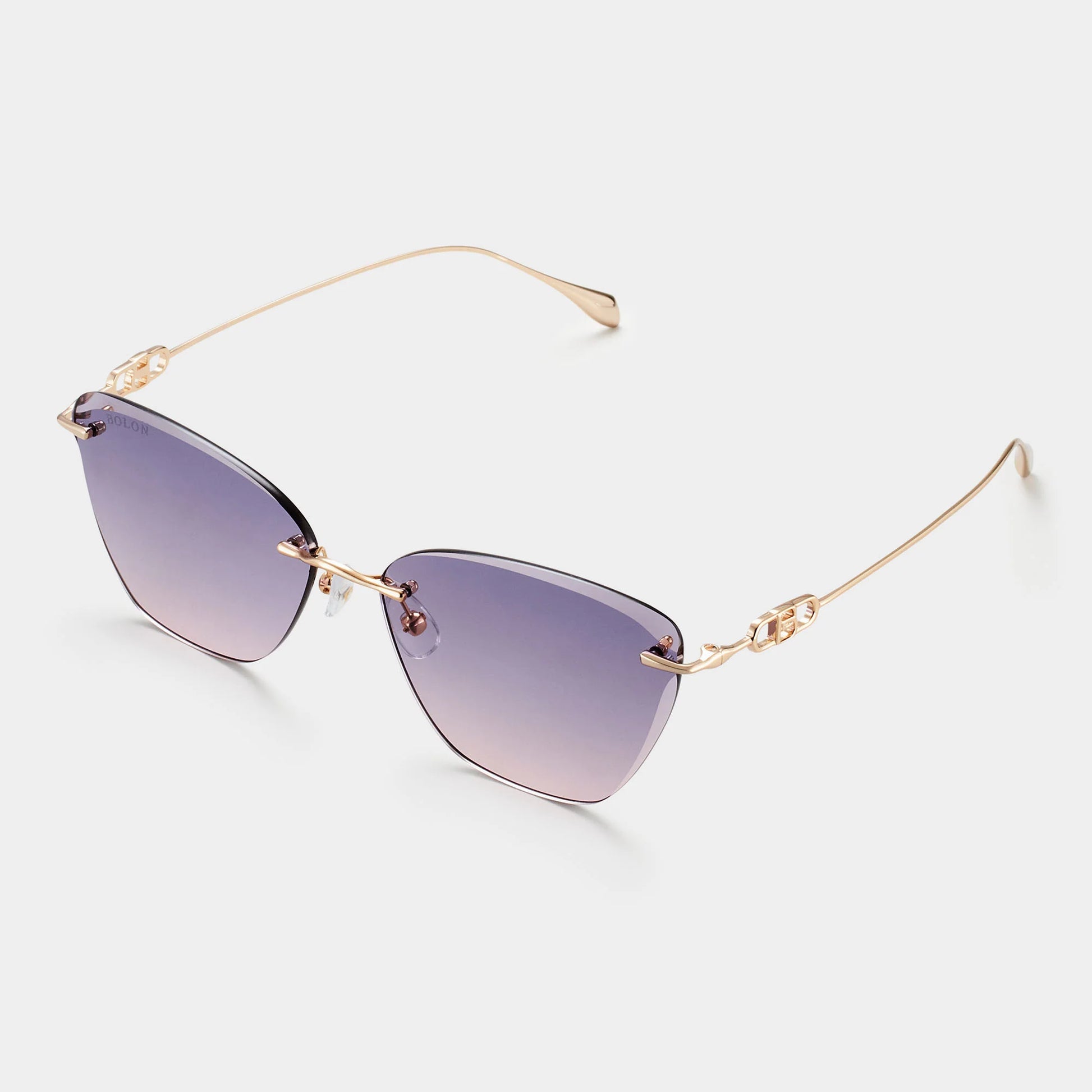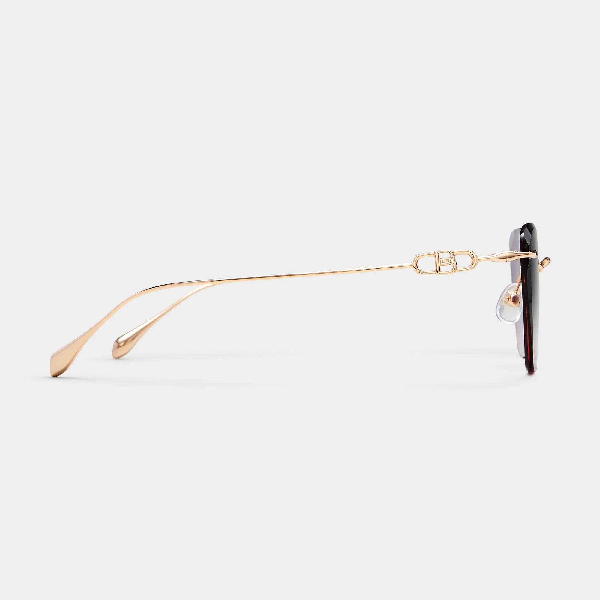 Frameless sunglasses that contrast diamond cut lenses with an ultra-thin length of gold, Chueca boasts a graceful silhouette for anyone looking to venture beyond the norm. Available 4 appealing colour-pairings, gradient lenses lend a captivating visual when worn.