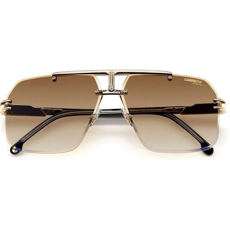 The Carrera 1054/S sunglasses feature an unconventional design for all trendsetters. This rimless aviator silhouette offers prominence to the gradient lenses which are attached to the double metal nose bridge that features the iconic Carrera C logo plaque, the true stand-out detail of this design. The functional screw claws act as an extra touch of character to an already incredible design.