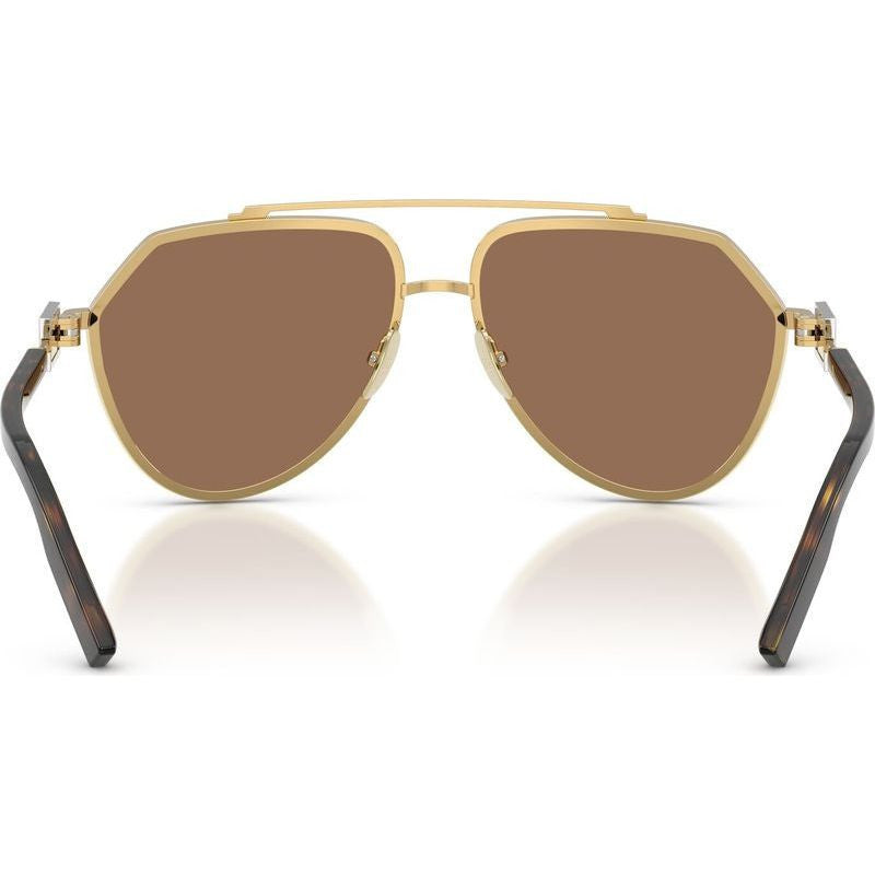 Introducing the striking DG2315 sunglasses by Dolce & Gabbana - a daring aviator silhouette that fuses luxury and sophistication. This exquisite design features a combo material construction featuring flat brown lenses set on a milled gold metal frame. The titanium nose pads ensure superior comfort, while a unique metal plaque hinge adds a touch of refined craftsmanship.