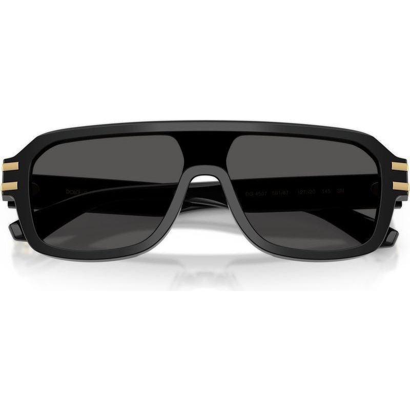 The DG4507 sunglasses by Dolce & Gabbana are a standout statement piece designed to elevate your style with refined sophistication. Showcased in the Spring/Summer 2025 campaign, this bold shield silhouette embodies timeless elegance and the brand’s renowned craftsmanship. The classic black frame is accented with sleek gold metal details and a luxurious DG-crossed logo. For high UV protection, the DG4507 sunglasses are fitted with dark grey lenses creating a sharp aesthetic while cutting out high UV rays.