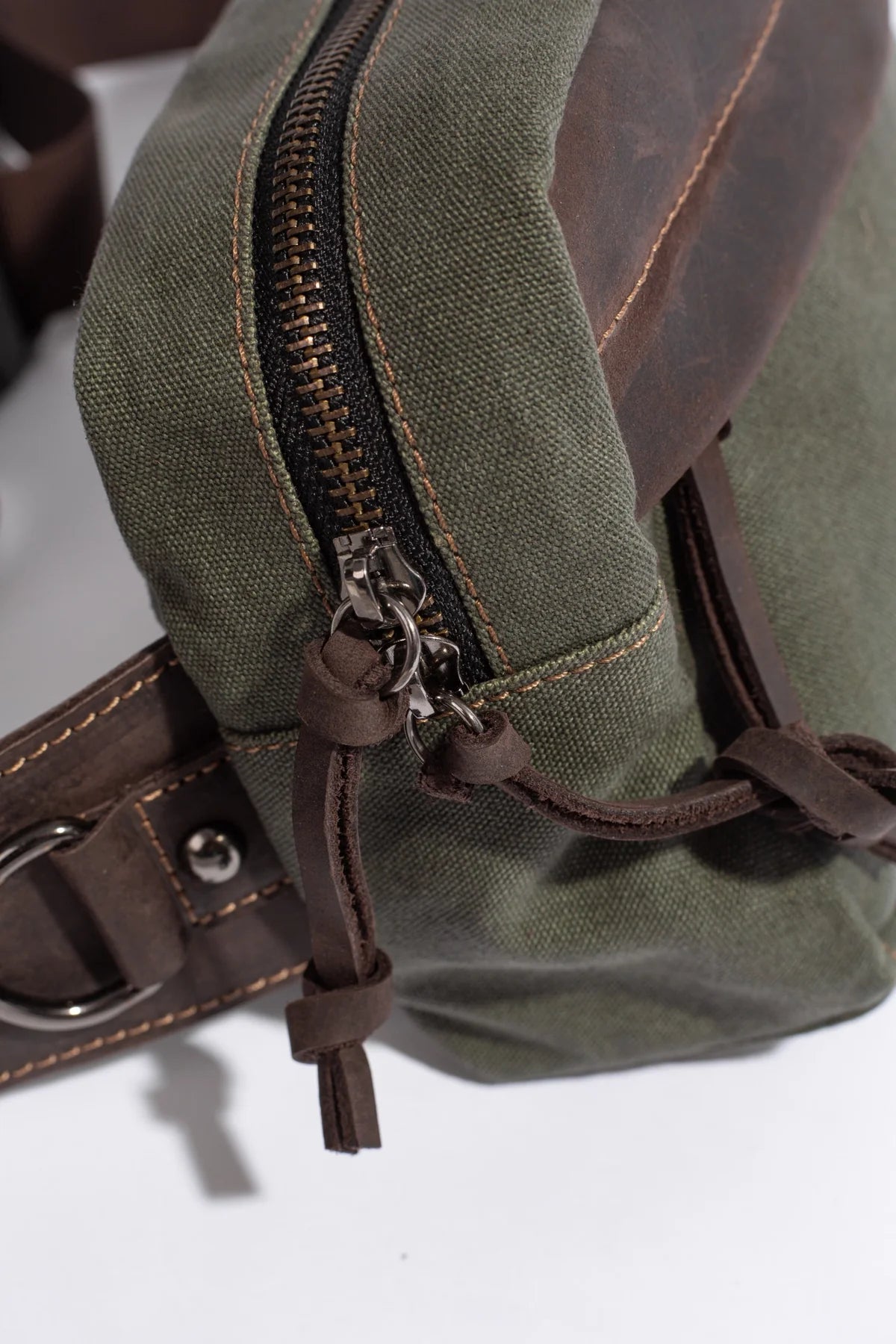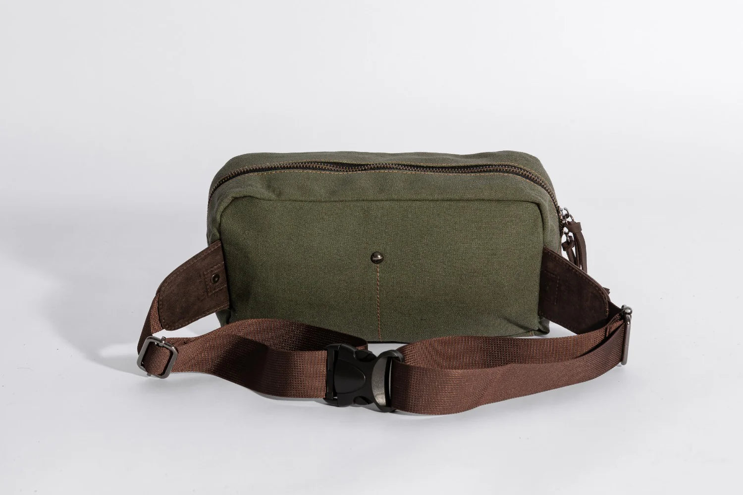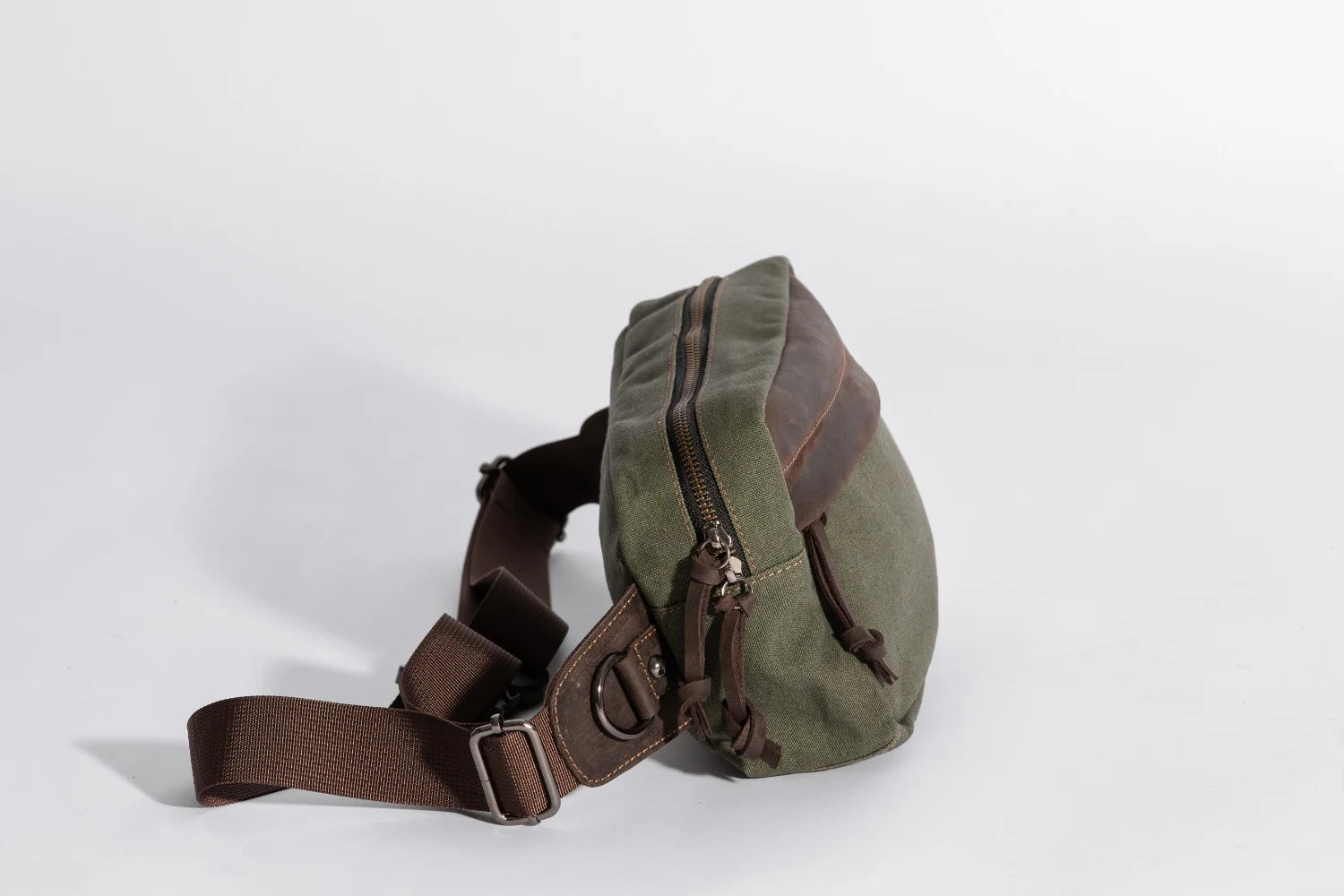 Functional and stylish, the Chester is a large-sized fanny and waist bag crafted from 100% waxed cotton canvas for durable water resistance & premium cow leather. Perfect for hands-free convenience, it offers ample space to keep your essentials secure and accessible during travel, outdoor activities, or everyday errands.