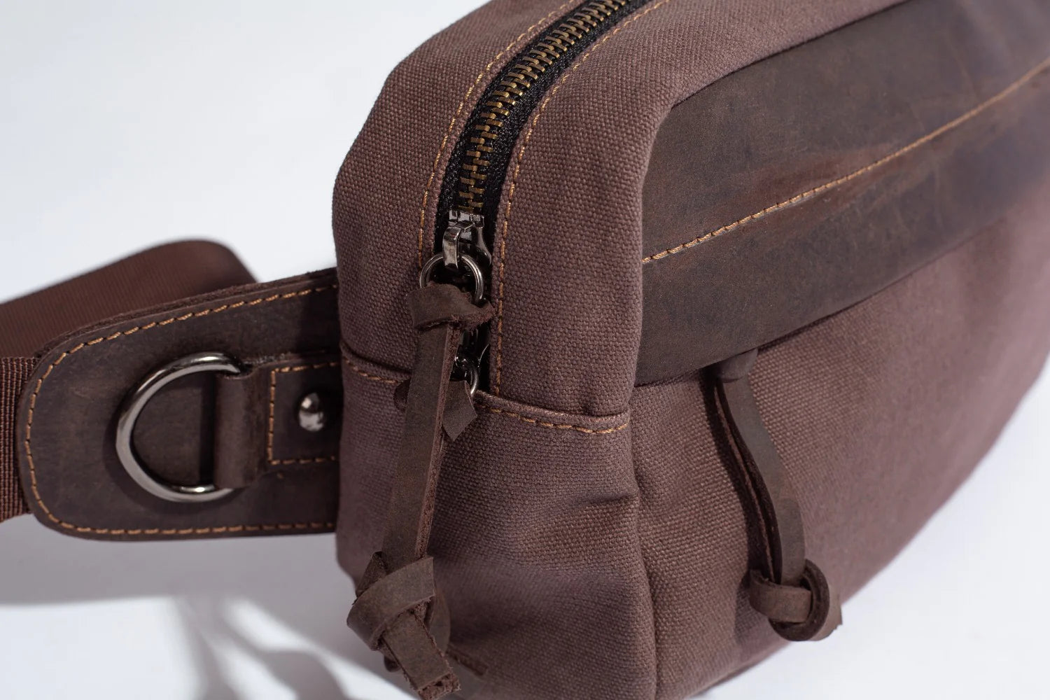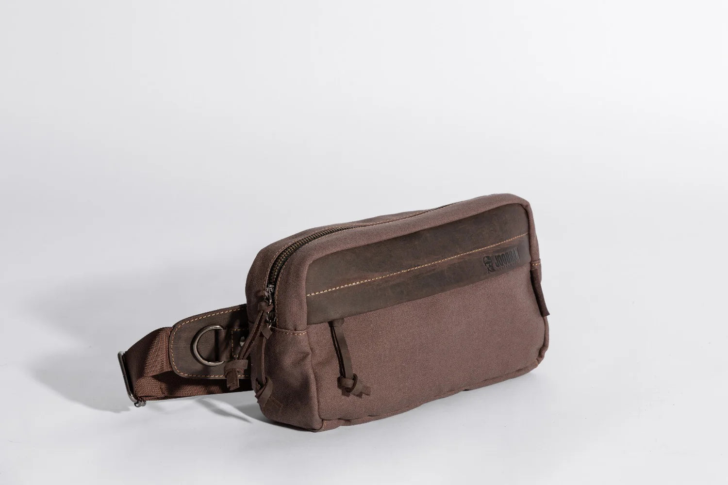 Functional and stylish, the Chester is a large-sized fanny and waist bag crafted from 100% waxed cotton canvas for durable water resistance & premium cow leather. Perfect for hands-free convenience, it offers ample space to keep your essentials secure and accessible during travel, outdoor activities, or everyday errands.