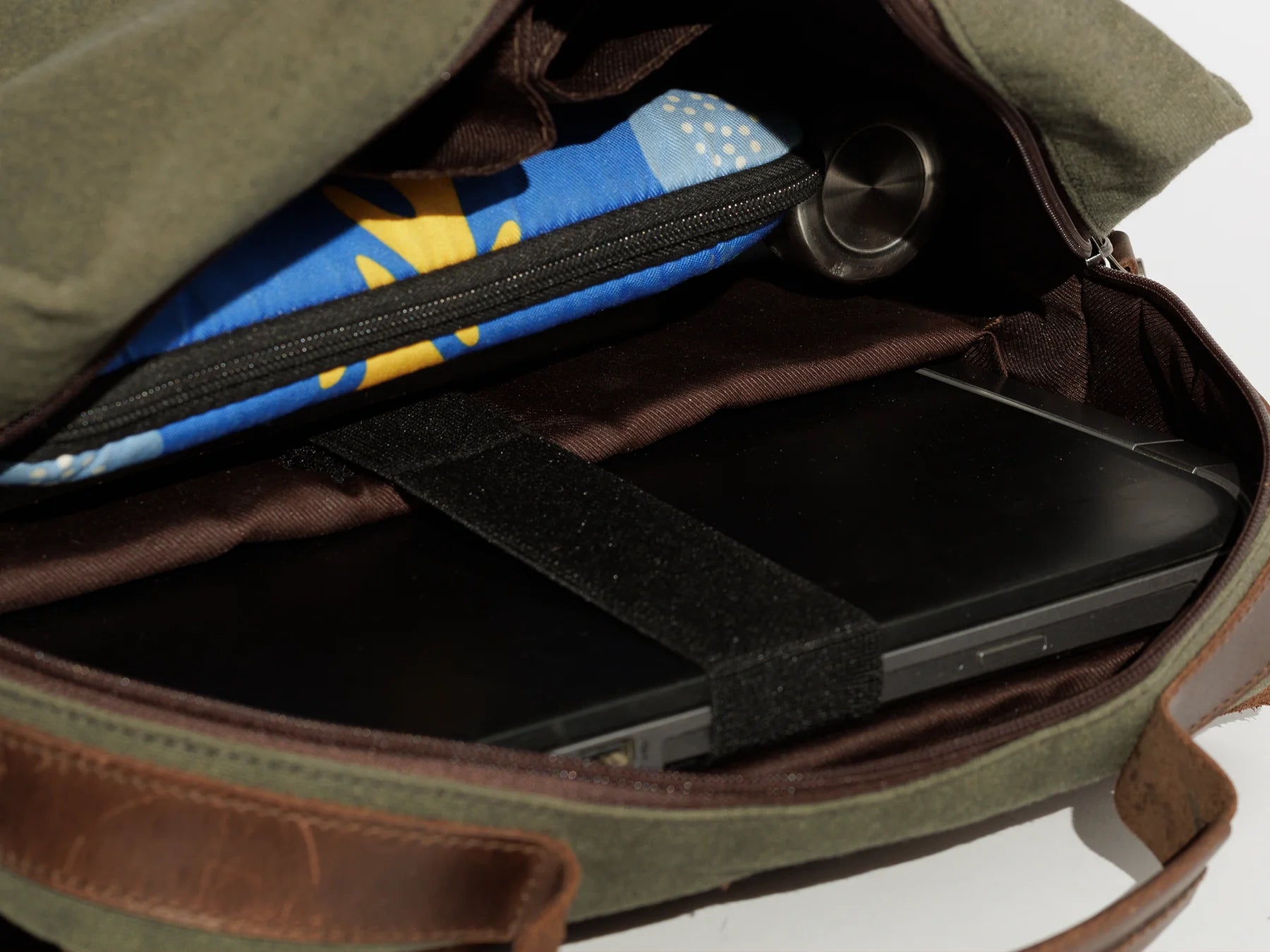 - Padded laptop compartment with secure strap