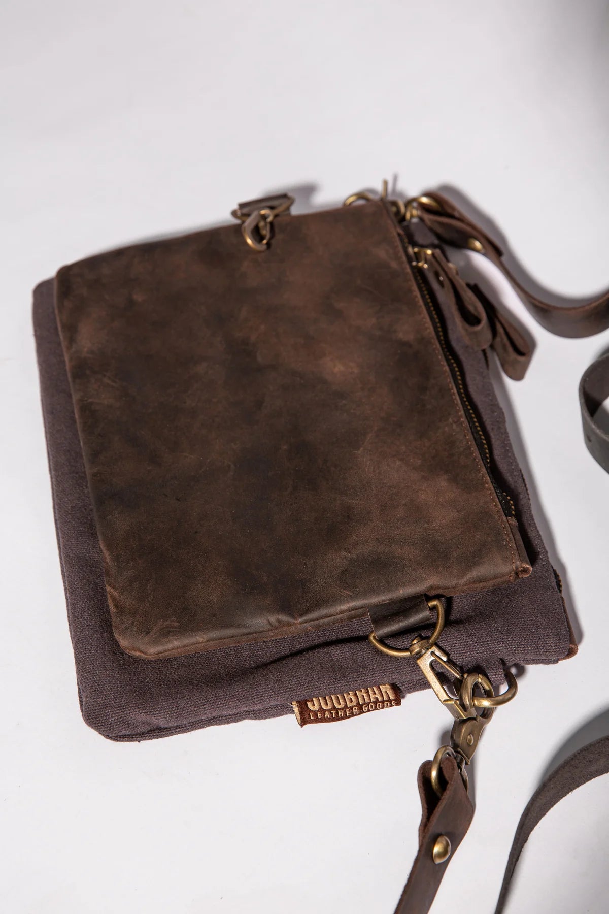 Introducing our Elegant double Pouch Crossbody Bag,. This UNISEX bag features two spacious pouches that can be used together or separately, allowing you to customize your carry experience.