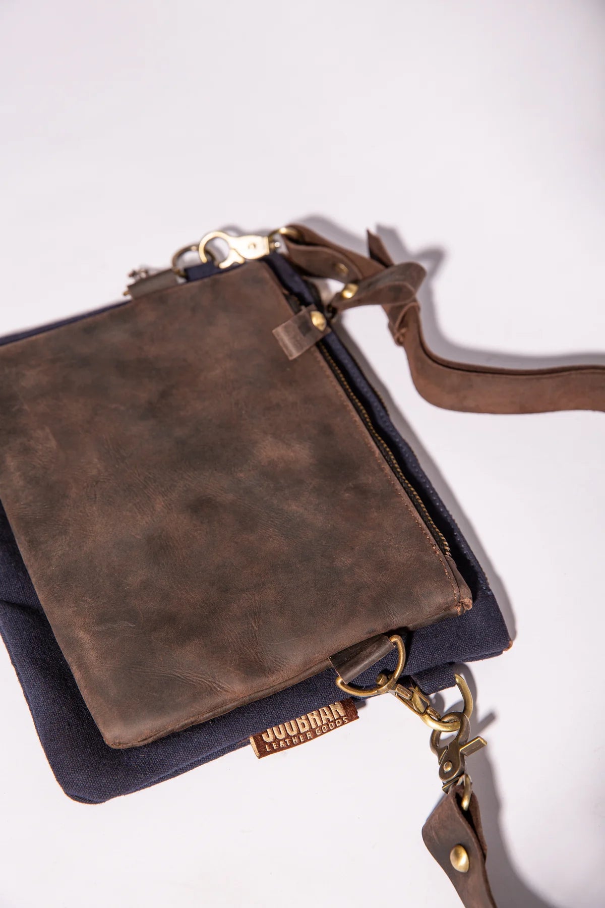 Introducing our Elegant double Pouch Crossbody Bag,. This UNISEX bag features two spacious pouches that can be used together or separately, allowing you to customize your carry experience.