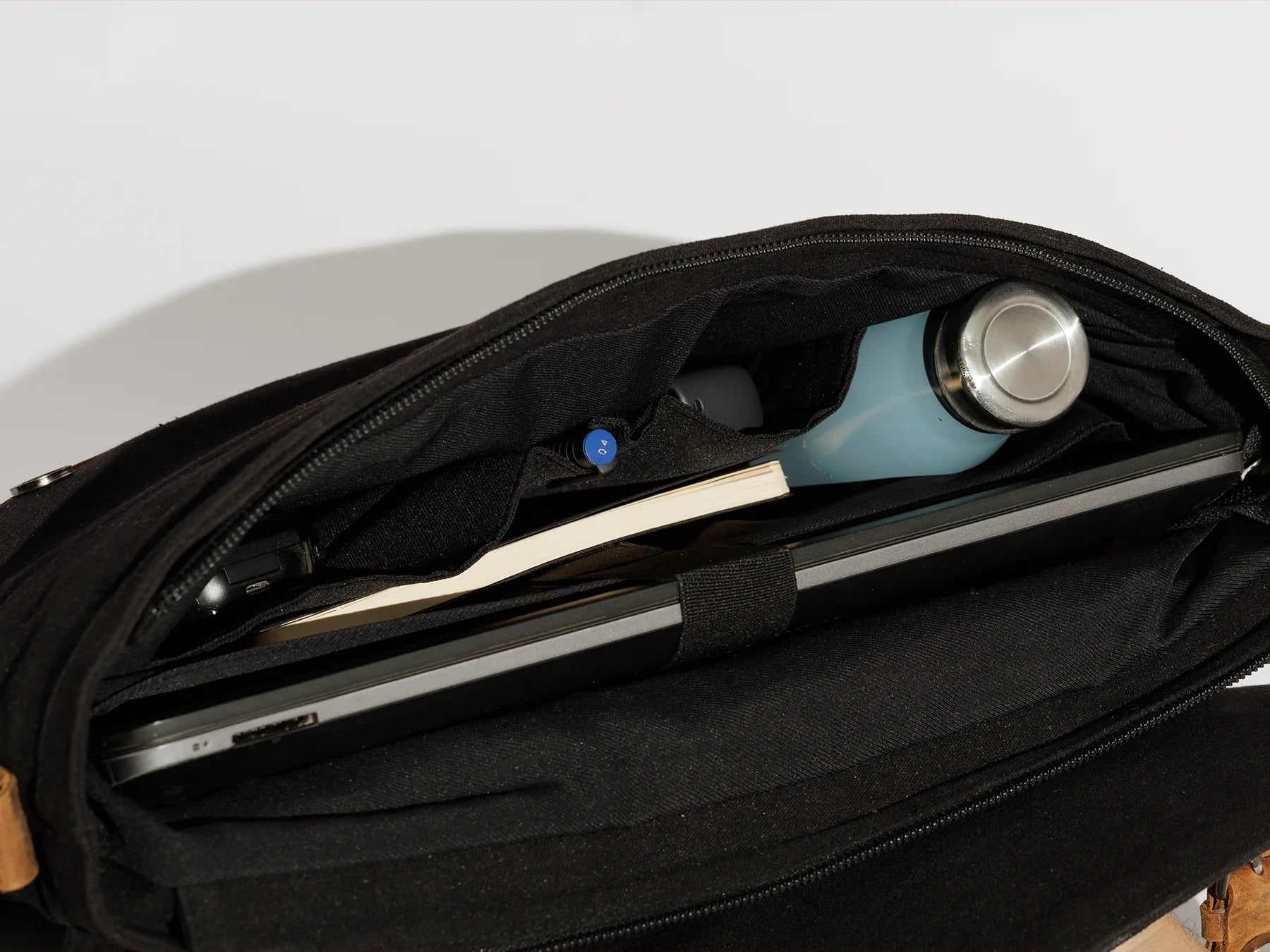 - Padded laptop compartment with secure strap