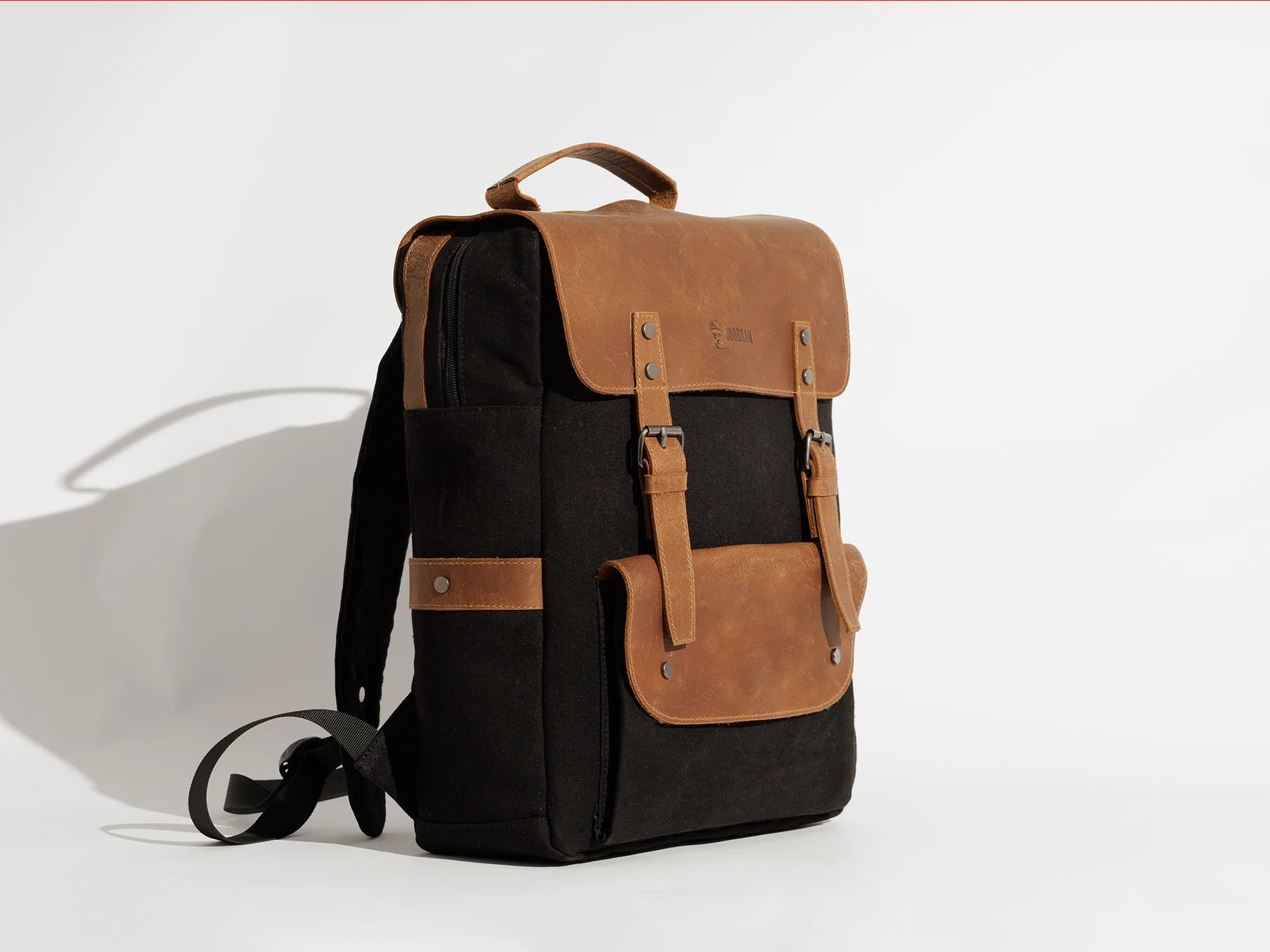 Vintage waxed canvas, leather, unisex backpack. This versatile backpack is great for when you are travelling and just as great for getting to and from work , university with your supplies and laptop in tow . It’s durable , water resistant and uses the best natural fibers .