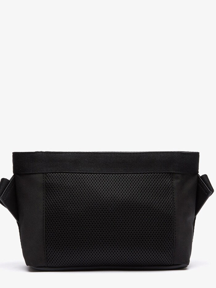 Men Lacoste Signature Print Water-Repellent Reporter Bag. Perfect for traveling. Adjustable shoulder strap for added comfort. One exterior flat pocket and one interior mesh pocket You can never have too many pockets. Crocodile print and brand coordinates. All roads lead to Lacoste. Exterior in PVC A durable design that stands the test of time. Dimensions 8.8 x 6.6 x 3 inches.