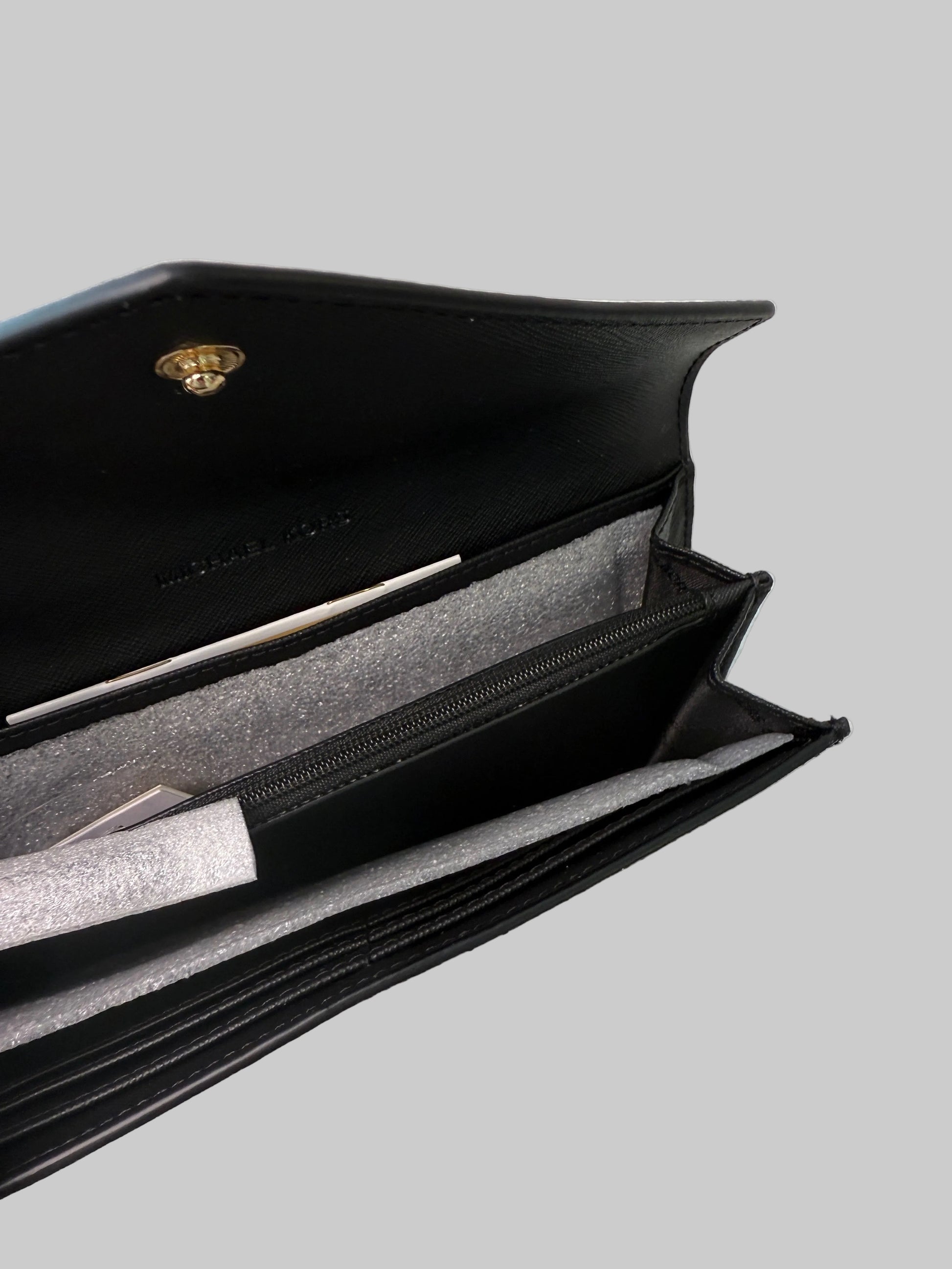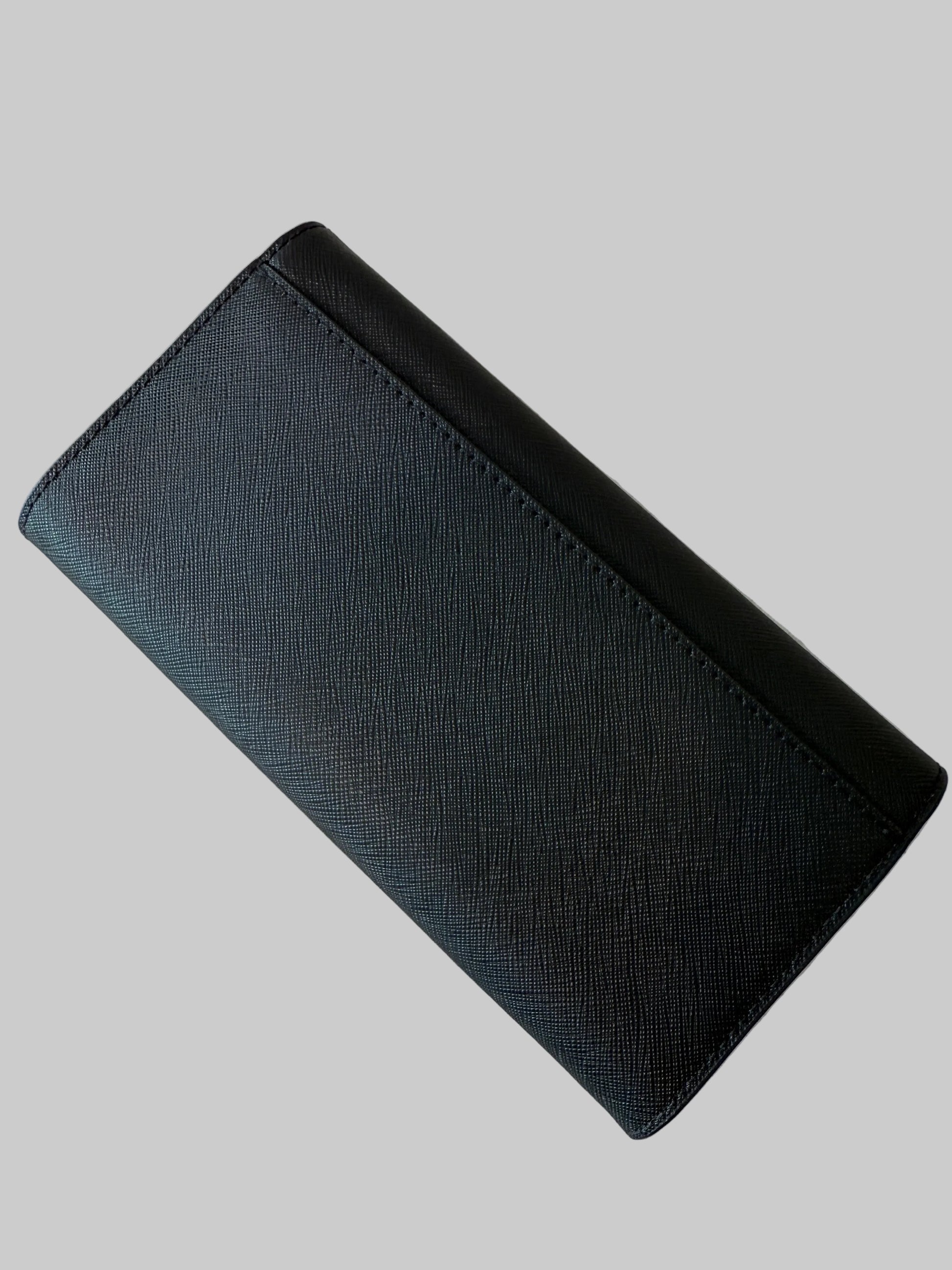 wallet, synthetic material, solid color, brand logo, internal coin pocket, snap fastenings, card slots