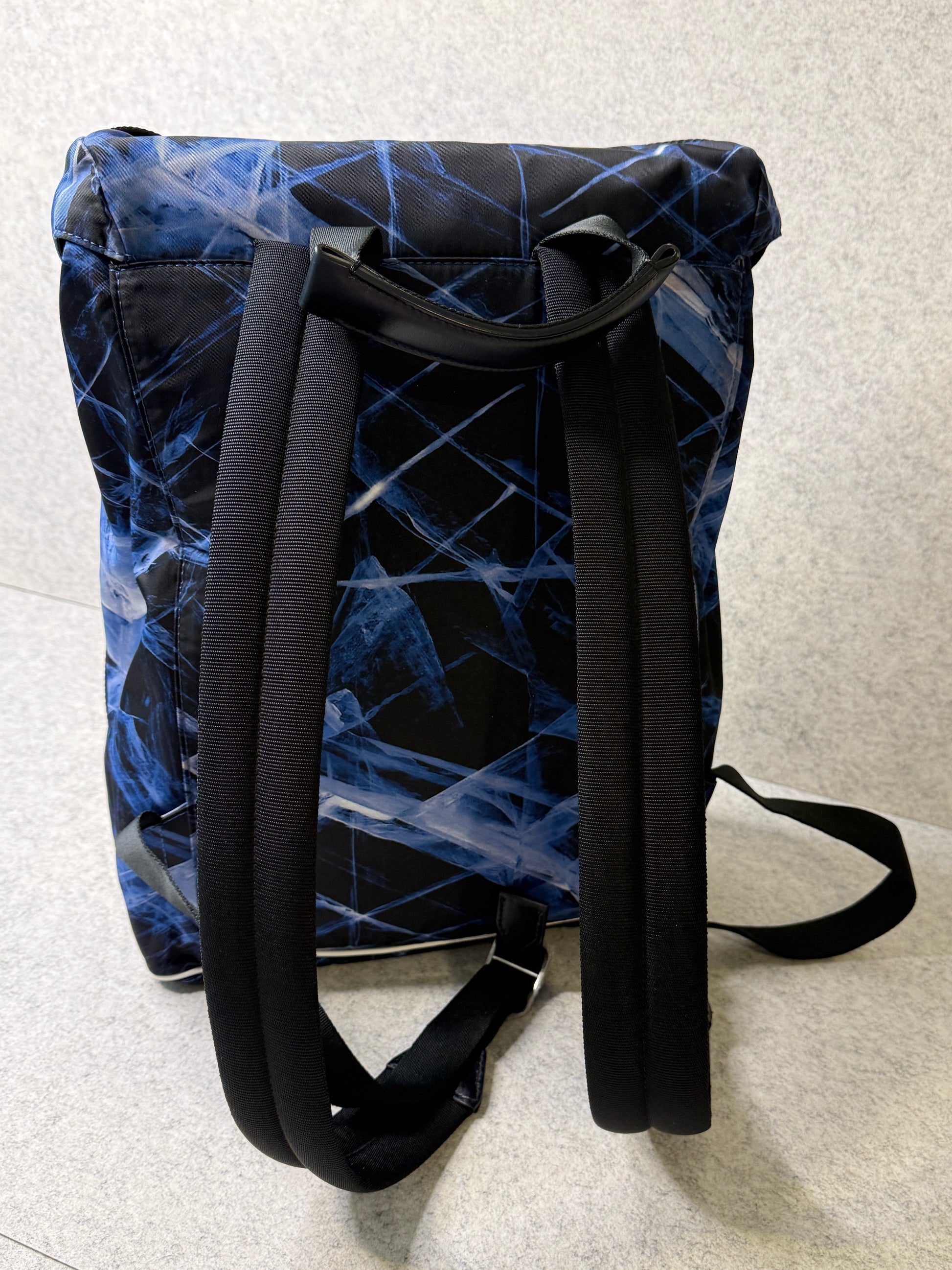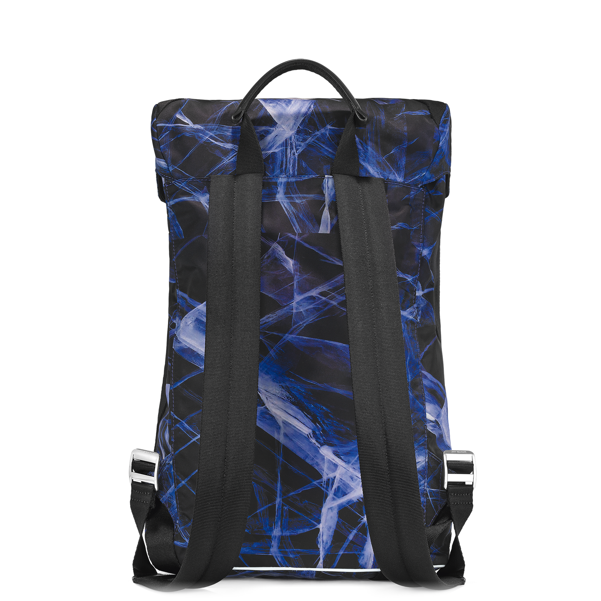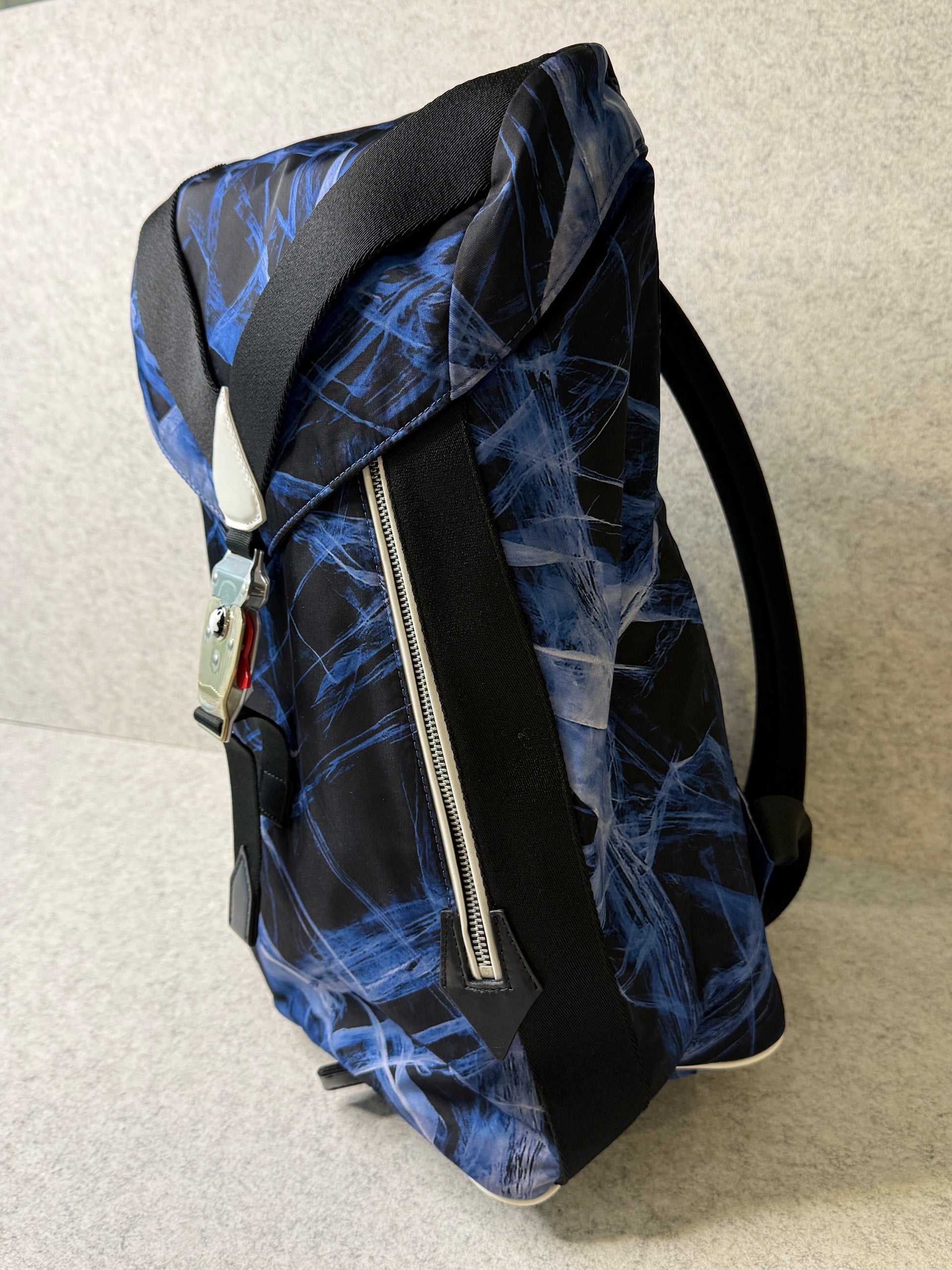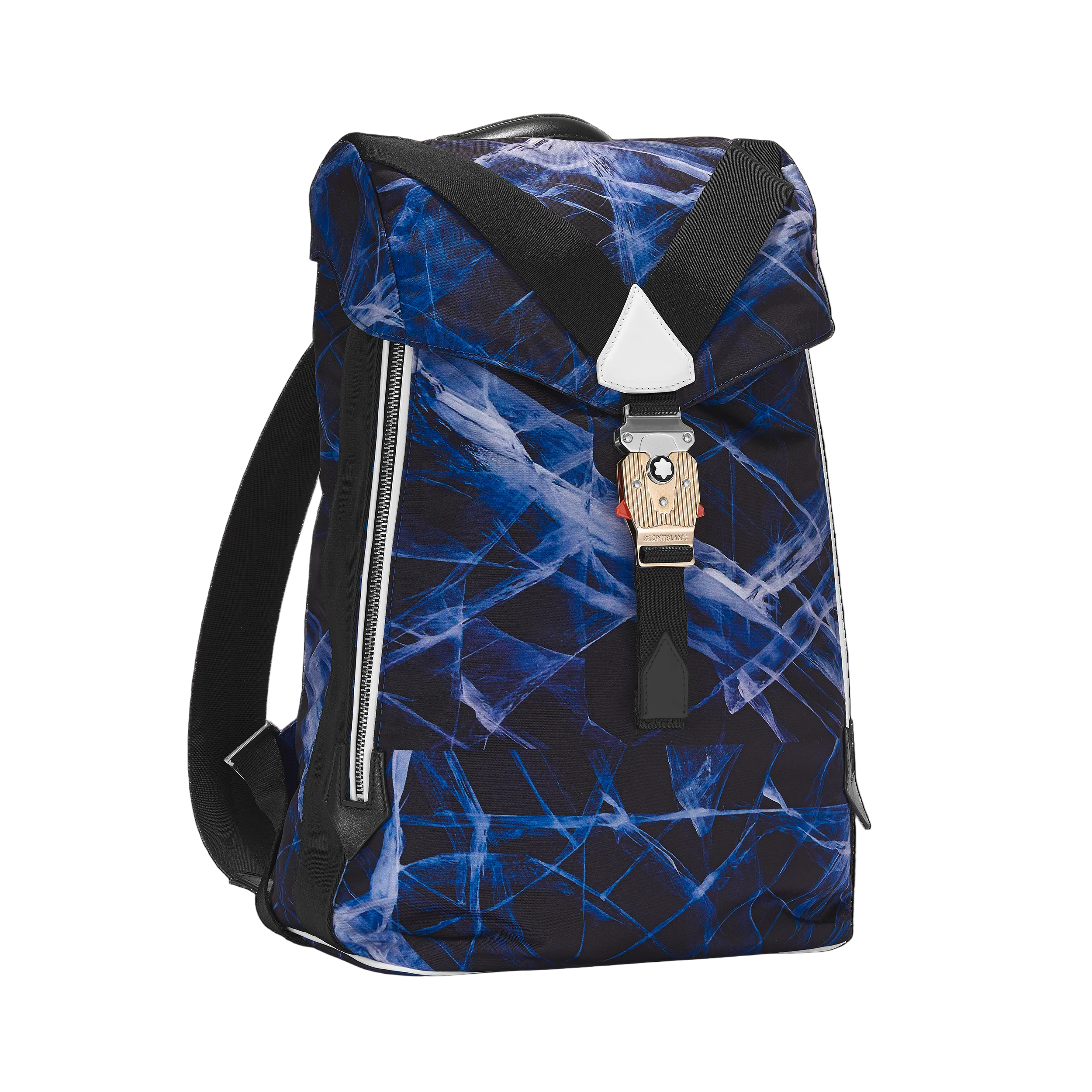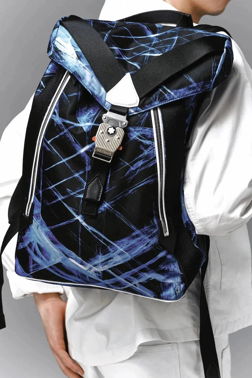 Designed for adventurous lifestyles, this medium-sized backpack offers ample room for active essentials. Crafted in the sustainable ECONYL® nylon yarn, the bag is printed with a bold glacier motif in tribute to the icy peaks of the Mont Blanc. The leather trimming of the bag is produced through a carbon neutral tanning process. A mountaineering buckle features on the strap, whilst outside closures make it easy to access personal belongings on the go, taking inspiration from the world of mountaineering.