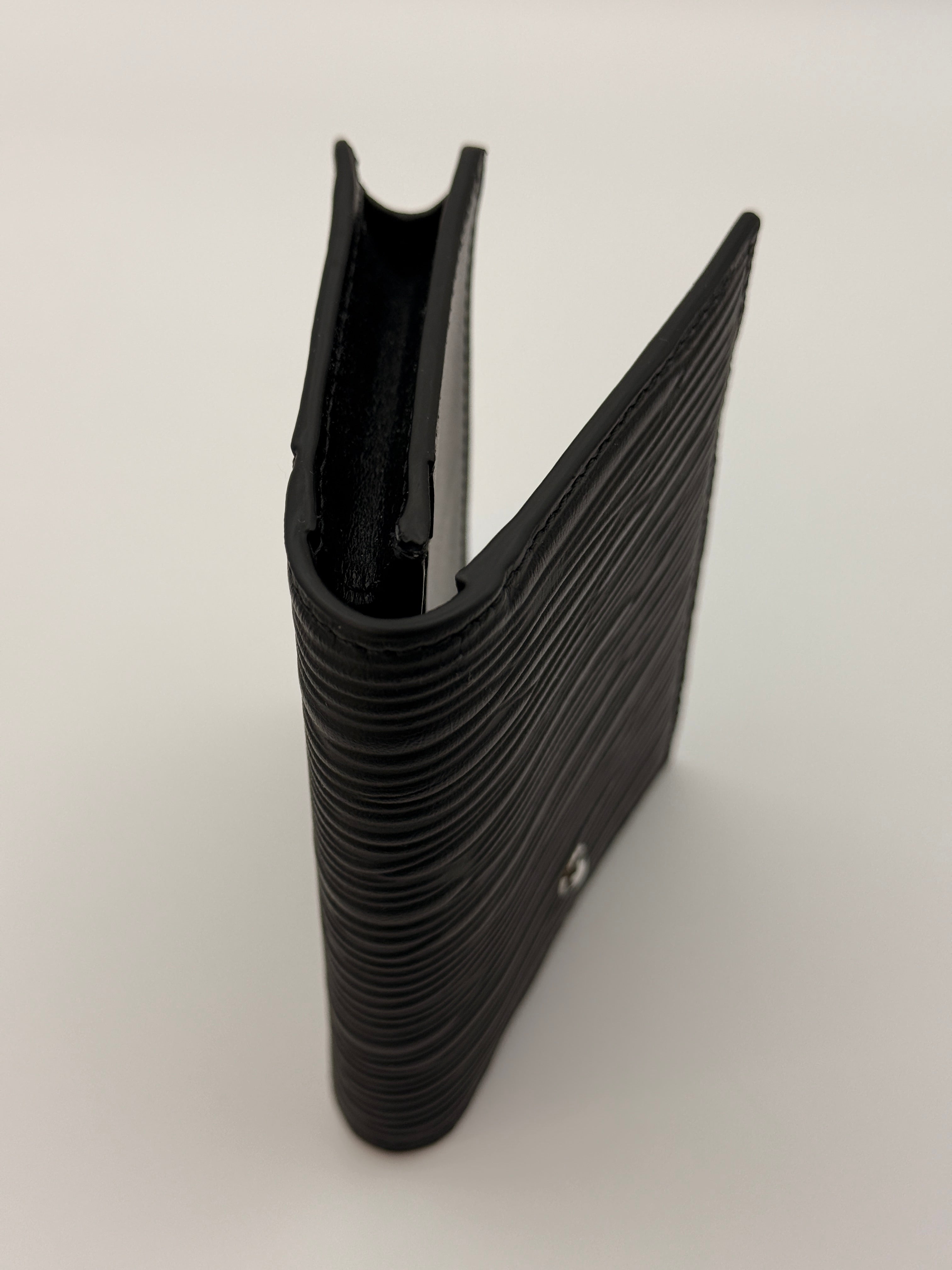 The 4cc Card Holder Meisterstück 4810 by Montblanc is a timeless expression of craftsmanship and sophistication. Made from premium black cowhide leather with an embossed finish, it features a compact, elegant silhouette that holds up to five cards. Designed with sustainability in mind using CO₂-neutral leather and recycled ECONYL® lining, it’s a refined everyday essential rooted in Montblanc’s iconic heritage.