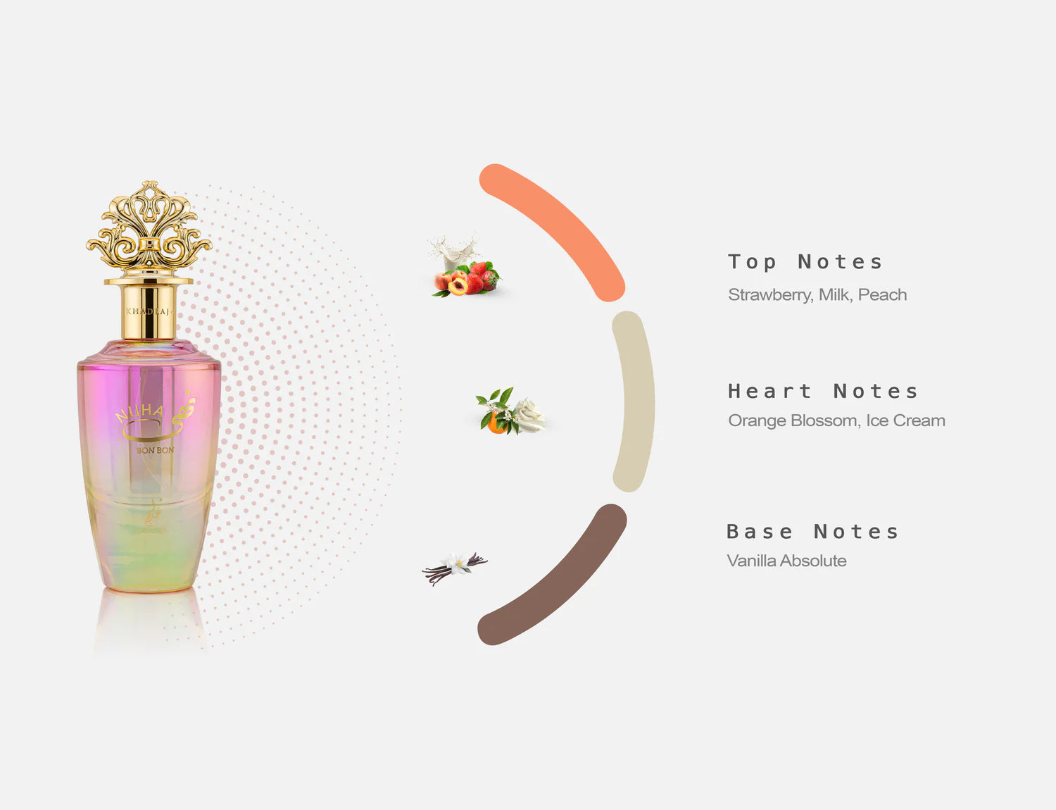 Perfect for everyday wear and special moments alike, Nuha Bon Bon by Khadlaj Perfumes is a sweet expression of happiness, femininity, and modern charm crafted for women who love playful, creamy, and comforting fragrances.