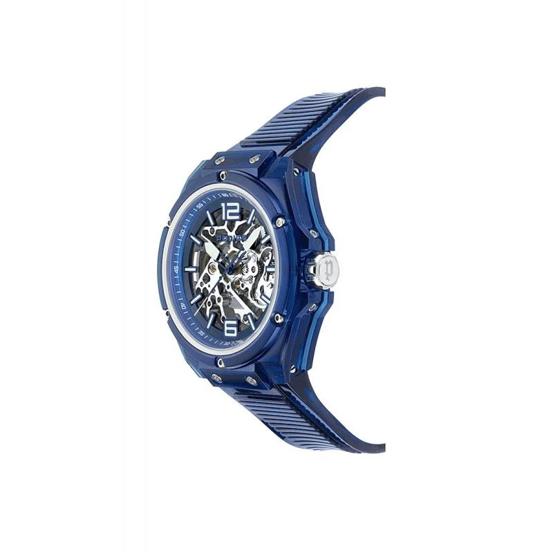 Police men's watch from the Barnhill collection, Self-winding mechanical movement, Blue PVC case, Silicone strap, WR 3 ATM.