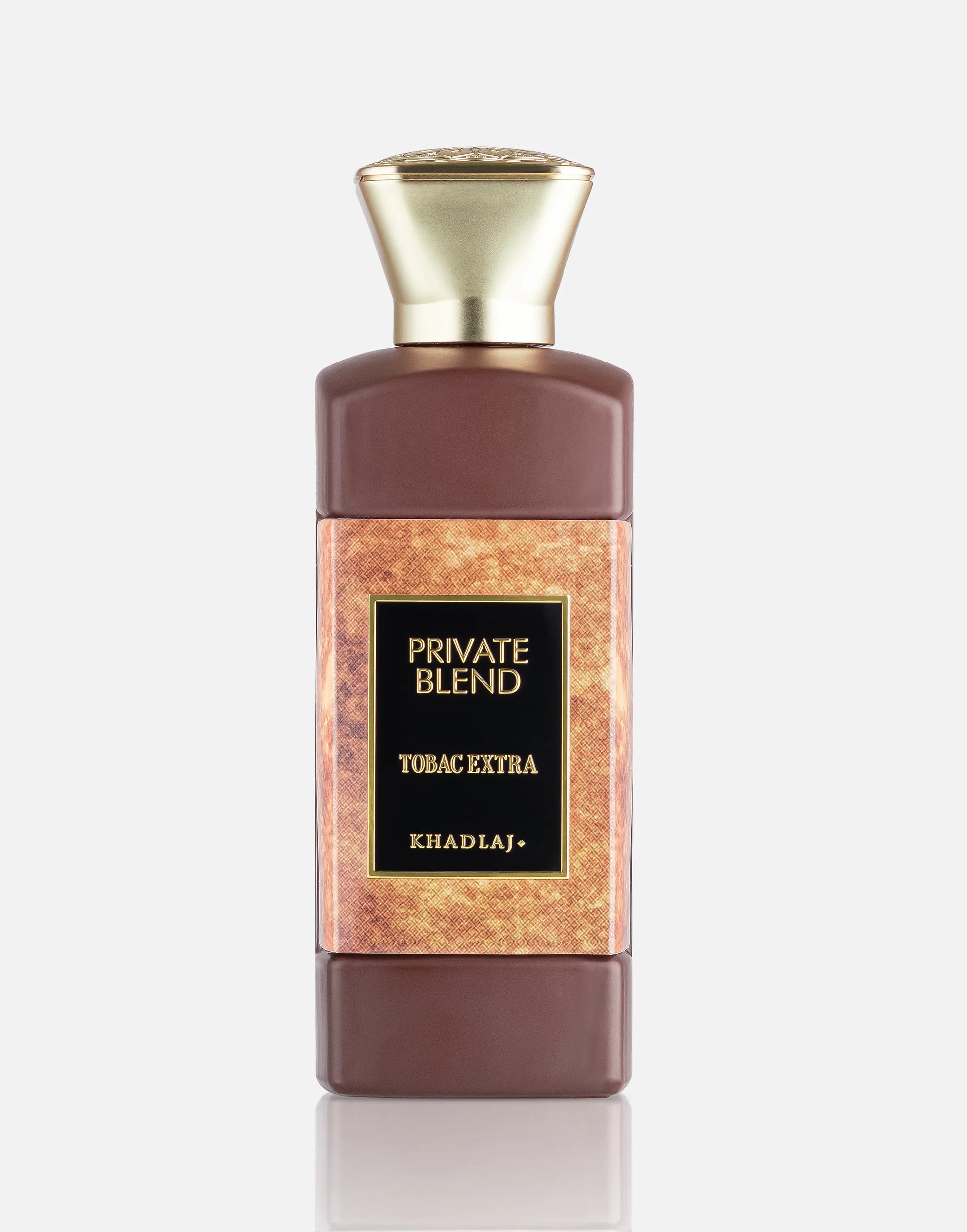 Indulge in the bold and sophisticated essence of PRIVATE BLEND TOBAC EXTRA EXTRAIT DE PARFUM By Khadlaj. This luxurious extrait de parfum opens with a rich fusion of saffron, nutmeg, and cinnamon, creating a warm and spicy allure. At its heart, an intoxicating blend of tobacco, incense, and orris adds depth and mystery. Finally, the fragrance settles into a sensual base of patchouli, oud, and vanilla, leaving a lasting impression of refined elegance.