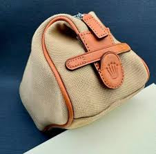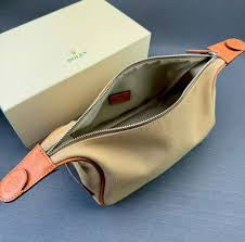 This Rolex brown toiletry bag combines luxury and practicality, crafted from premium Fabric. Featuring a sleek design with subtle Rolex branding, it offers ample space for travel essentials. A refined accessory for the discerning traveler and Rolex enthusiast.