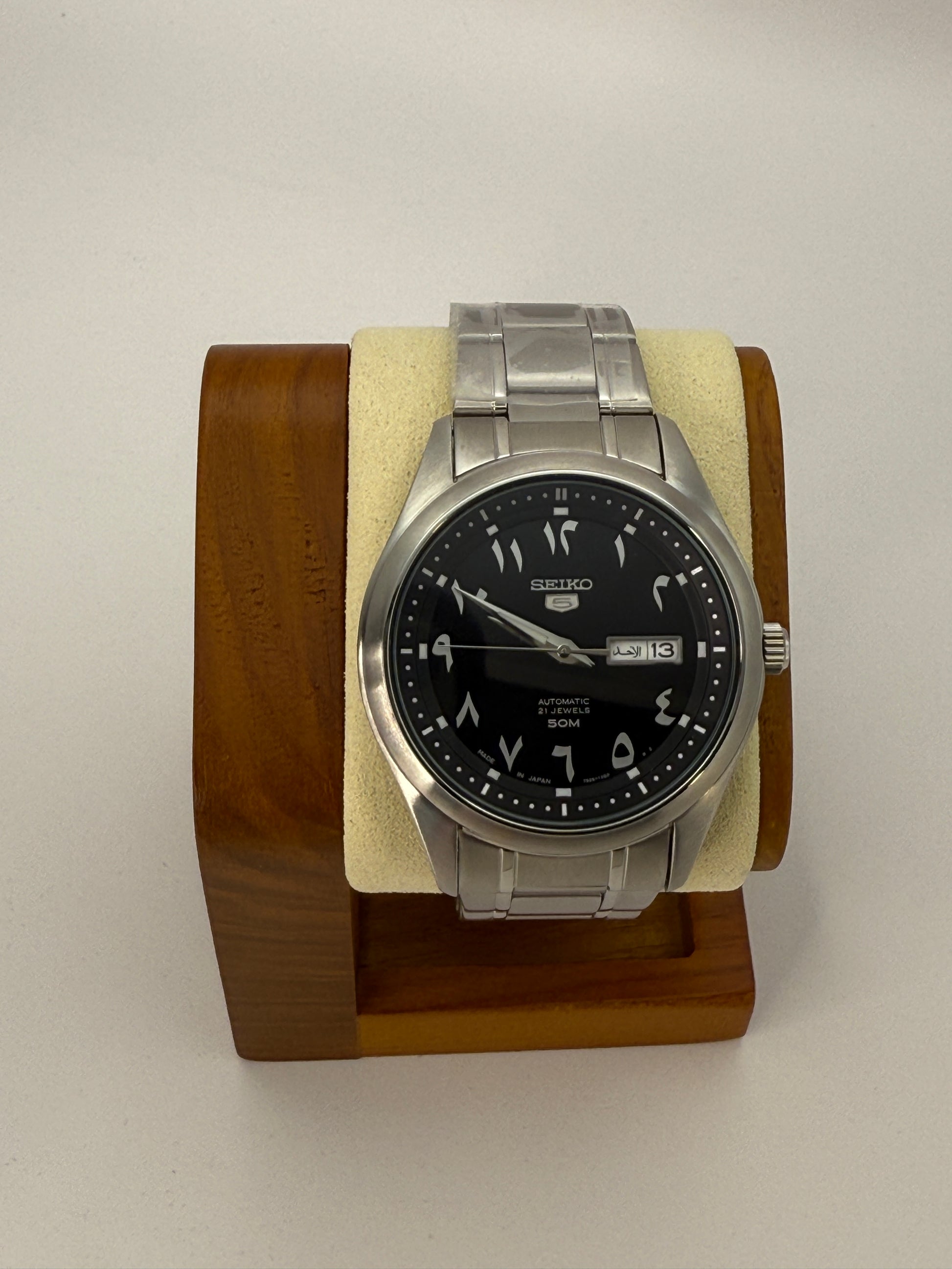 The Seiko Arabic Dial is a cult watch worldwide. The dial with Arabic numerals adds a touch of originality to its elegant 42mm case. This variant is part of the Seiko 5 range, which is only available in the Middle East, making it a choice model that you won't come across often. Elegance and originality are the adjectives that best describe this unusual model.